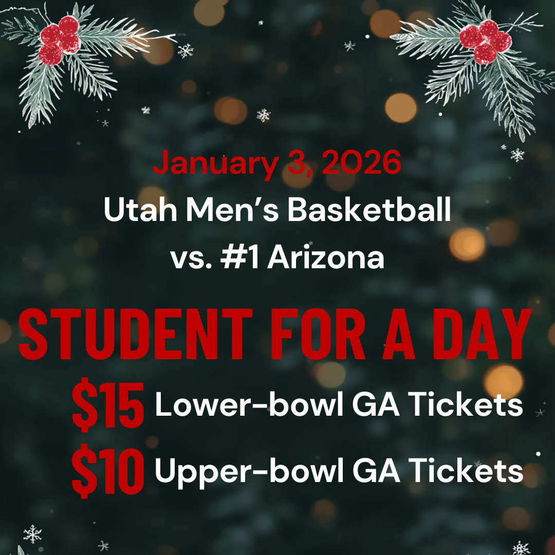 $15 lower bowl general admission tickets in sections G or H or $10 upper bowl seats as the Runnin’ Utes take on #1 Arizona!