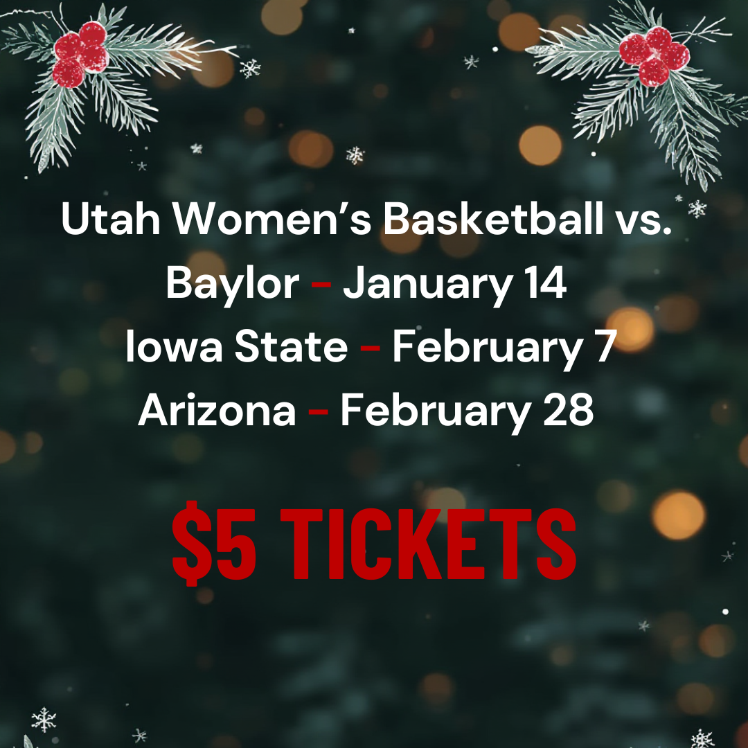 Score $5 general admission tickets and pack the Huntsman as Utah Women’s Basketball takes on Baylor on January 14, Iowa State on February 7 and Arizona on February 28!